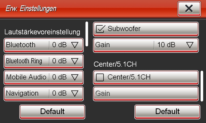 - RCA výstupy Front, Rear, Center, Subwoofer