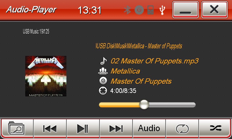 - Podpora Bluetooth handsfree vrátane načítanie telefónneho zoznamu a bezdrôtového prehrávania hudby pomocou A2DP