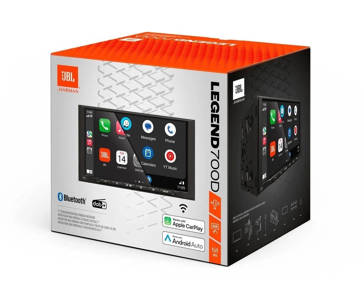 2DIN autorádio, 7" LCD, Bluetooth, USB, AUX, SD, Apple CarPlay a Android Auto, DAB/DAB+, biele podsvietenie tlačidiel, 3x RCA (4V)