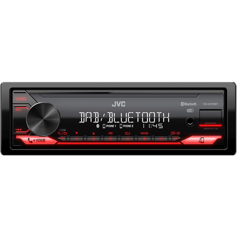 1DIN, vstavaný Bluetooth, bez CD mechaniky, USB vstup, červené podsvietenie, DAB+, ovláda FLAC