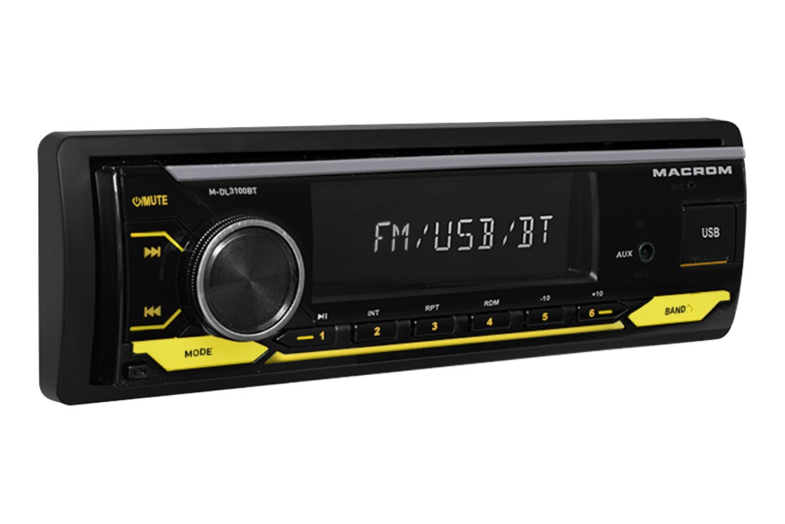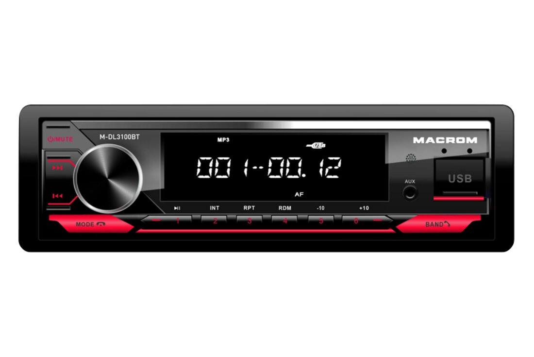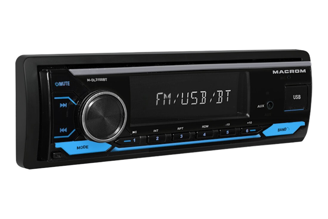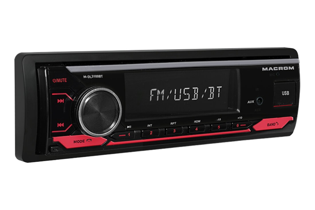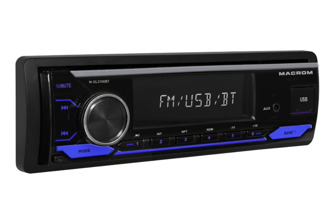 MACROM M-DL3100BT je moderné 1DIN autorádio bez CD mechaniky, ktoré ponúka kompletné multimediálne vybavenie pre pohodlnú jazdu. Vďaka USB a micro SD slotom na prednom paneli môže prehrávať hudbu vo formátoch MP3, WMA, FLAC a APE. K dispozícii je AUX vstup pre jednoduché pripojenie externých zariadení. Rádio je vybavené Bluetooth HF súpravou s externým mikrofónom, ktorá zaisťuje čistý zvuk pri hands-free hovoroch a podporuje aj bezdrôtové prehrávanie hudby (A2DP). Zosilňovač MOSFET s výkonom 4 × 50 W poskytuje dostatočnú rezervnú energiu a štyri výstupy RCA umožňujú pripojiť zosilňovače alebo subwoofer. Elegantný predný panel je odnímateľný a jeho podsvietenie je možné prispôsobiť výberom zo siedmich farieb.