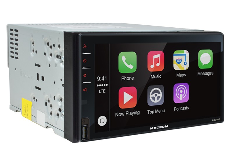 Macrom M-DL7000D je multimediálna jednotka podporujúca funkcie Apple CarPlay, Android Auto, s DAB+ zabudovaným tunerom, USB zadným a predným vstupom. Prístroj je vybavený kapacitným dotykovým monitorom 6,8", vstupom pre cúvaciu kameru (po zaradení spiatočky), vstupom pre ovládanie z volantu. Macrom M-DL7000D obsahuje Hands free sadu s externým mikrofónom. Pomocou 2DIN inštalačného rámčeka možno umiestniť do väčšiny typov automobilov.