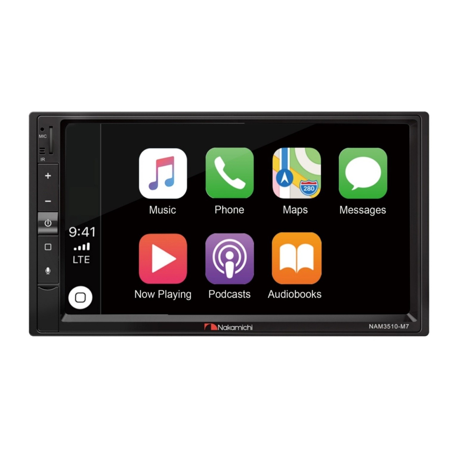 Nakamichi NAM3510-M7 je bezmechanikové autorádio s veľkosťou 2DIN, ktoré disponuje dotykovým displejom s veľkosťou 7". Na čelnej aj zadnej strane nájdete USB vstup, cez ktorý môžete prehrávať obľúbenú hudbu alebo multimédiá. Na rovnaké účely môžete využiť aj ďalší slot, ktorý umožní vloženie microSD karty. Rádio podporuje aj obľúbené funkcie Apple CarPlay a Android Auto, vďaka ktorým môžete ovládať aplikácie ako Spotify, Tidal, Waze, Google Maps, Facebook a mnoho ďalších cez dotykový displej autorádia. Samozrejmosťou je aj Bluetooth pre bezpečné telefonovanie a streamovanie hudby. Mikrofón je u tohto modelu integrovaný, je však možné pripojiť aj externý mikrofón. Farbu tlačidiel môžete vyberať podľa chuti vďaka variabilnému podsvieteniu, v balení nájdete aj diaľkový ovládač a poteší aj 3 páry RCA výstupov (4V) pre zosilňovač. Zameranie na vyššiu kvalitu zvuku je zrejmé aj vďaka vstavanému DSP procesoru, na ktorom môžete nastaviť aj časové korekcie alebo 16pásmový ekvalizér.