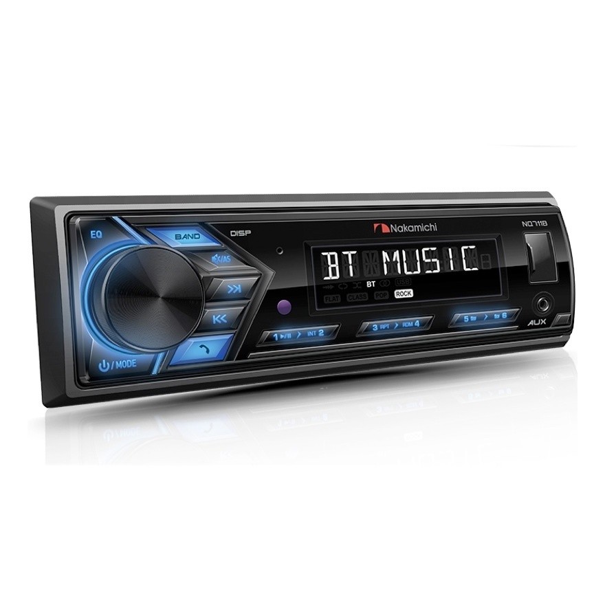 Nakamichi NQ711B je 1DIN bezmechanikové autorádio s možnosťou ovládania niektorých funkcií pomocou aplikácie pre chytré telefóny vybavené OS Android, ktorú si môžete ľahko stiahnuť do svojho chytrého telefónu. Autorádio disponuje čelným vstupom na USB s podporou formátov Hi-res audio a Bluetooth rozhraním, vďaka ktorému je možné hudbu streamovať bezdrôtovo a rovnako tak môžete túto technológiu využívať na hands-free telefonovanie. Autorádio je možné ovládať aj pomocou priloženého diaľkového ovládača, ktorý nájdete v balení. Na zadnej strane nájdete RCA výstupy pre zosilňovač, video výstup a jack konektor pre externý mikrofón. Samozrejmosťou je AM/FM tuner s RDS a autorádio je možné ovládať aj hlasovo vďaka funkcii push to talk. Pripojenie externého zosilňovača je možné vďaka dvom párom RCA výstupov.