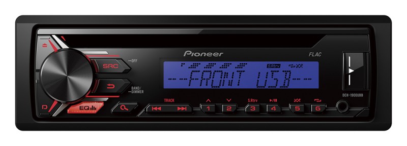 4 * 50W MOSFET, čelný presvetlený vstup USB, čelný vstup AUX, funkcia Pioneer ARC, ASR, FLAC, CD-R/RW, MP3/WMA/WAV, 5-pásmový grafický ekvalizér, Android funkcie AOA 2.0, 1xRCA výstup, priame ovládanie sub., vstup pre kab. DO z volantu, telefón MUTE, 24 staníc, zálohovanie pamäti po odpojení od akumulátora DEH-1900UB - červená tlačidlá, biely displej, DEH-1900UBA - oranžová tlačidlá, biely displej DEH-190UBB - červená tlačidlá, modrý displej, DEH-1900UBG - zelená tlačidlá, biely displej