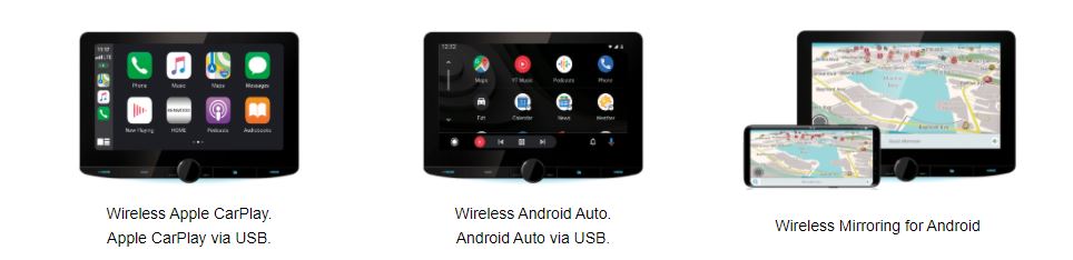 - Podporuje CarPlay a Android Auto bezdrôtovo alebo pripojené cez USB.