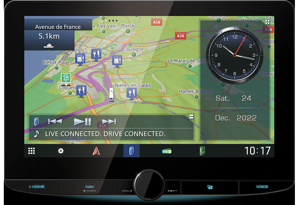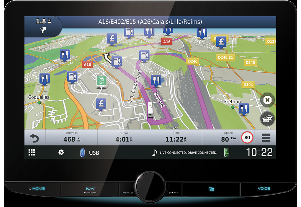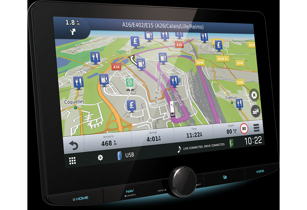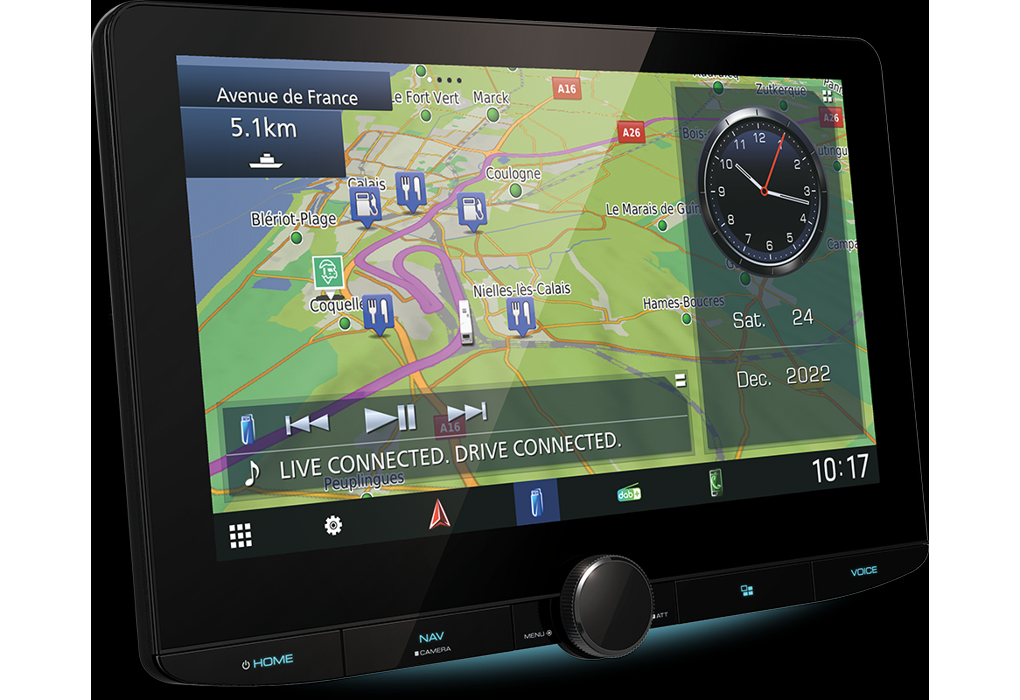 Navigačný systém a digitálny multimediálny AV prijímač v jednom zariadení s 10,1" HD displejom, rozšíreným bezdrôtovým pripojením k smartfónu a digitálnym rádiom DAB+. Vylepšite svoj továrenský audiosystém o najnovší navigačný systém Kenwood s 10,1" HD displejom, ktorý poskytuje priestor pre viac informácií, ktoré sú veľké a ľahko viditeľné na prvý pohľad. Autorádio je vybavené špičkovým navigačným softvérom Garmin pre nákladné vozidlá, prívesy a dodávky, ktorý ponúka rôzne možnosti zobrazenia na uľahčenie jazdy. Bezdrôtové pripojenie k smartfónu na prístup k mapám, telefónu, hudbe a správam z telefónu bez nutnosti pripojenia káblov. Obsahuje CarPlay, Android Auto a bezdrôtové zrkadlenie pre Android. 4 vstupy pre kamery, ktoré umožňujú maximálne pohodlie, flexibilitu a bezpečnosť. Pomocou grafického ekvalizéra si môžete prispôsobiť kvalitu zvuku podľa svojho jedinečného vkusu. Dodatočná zvuková kulisa je k dispozícii vďaka funkcii Time Alignment, ktorá je navrhnutá tak, aby poskytovala optimálny zvukový výkon.Apple CarPlay umožňuje používateľom iPhonu intuitívne telefonovať, používať Mapy, počúvať hudbu a pristupovať k správam jednoduchým slovom alebo dotykom. V systéme iOS 12.0 a novšom sú podporované aj navigačné aplikácie tretích strán, napríklad Google Maps™. Na kompatibilných iPhonoch je k dispozícii bezdrôtové pripojenie.