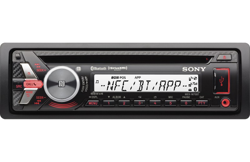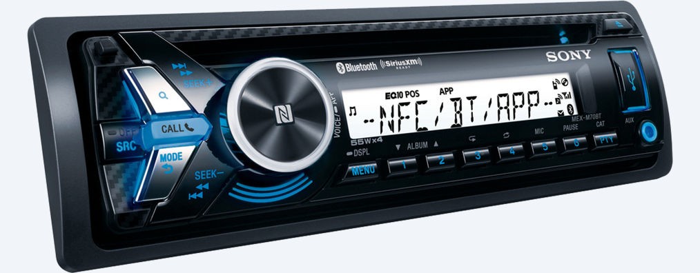Autorádio SONY rozmeru 1DIN s CD prehrávačom, USB vstupom, s Bluetooth a NFC pre okamžité spárovanie s telefónom, s výstupným výkonom 4 x 55W, modré a červené podsvietenie tlačidiel, UV odolné, vode odolné.