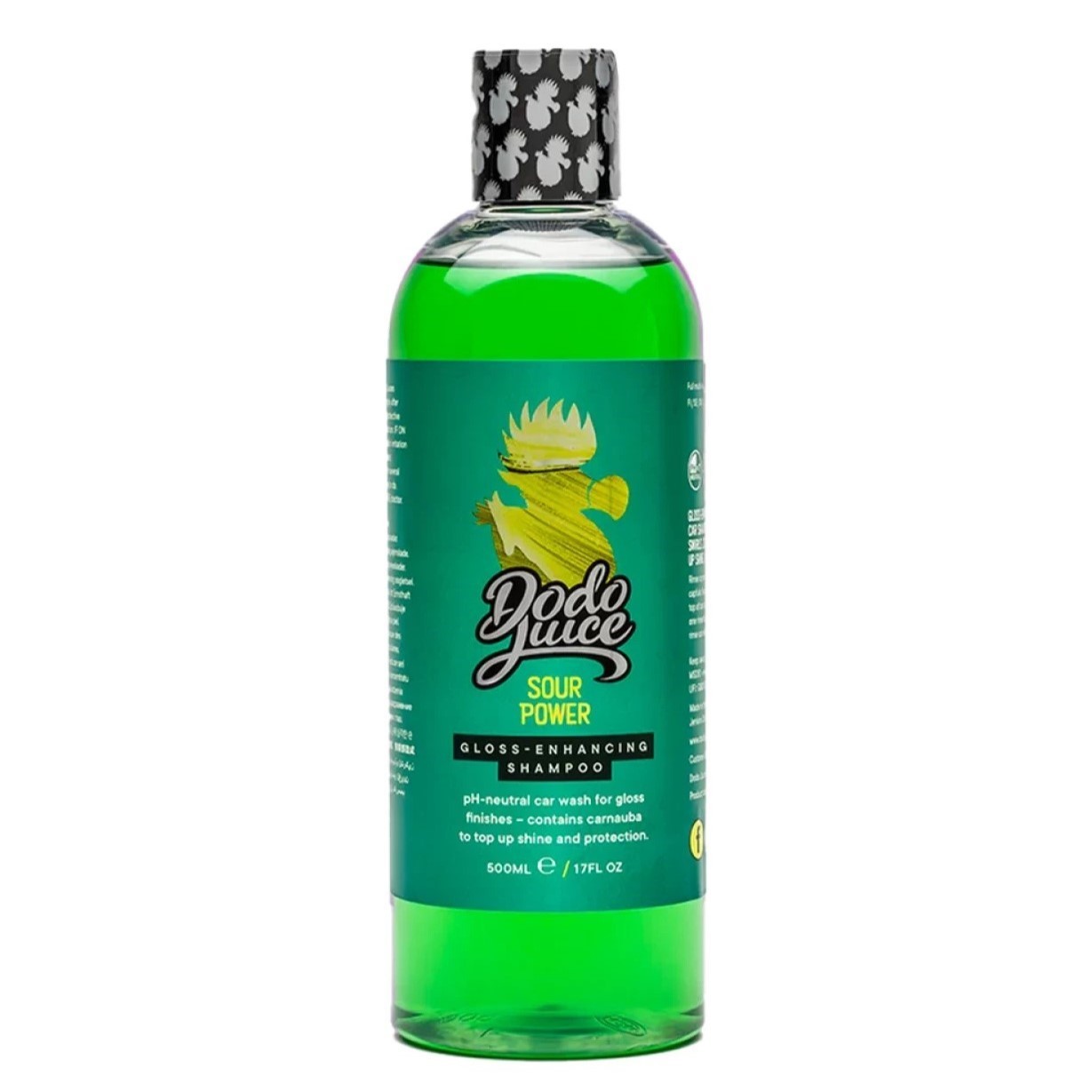 Dodo Juice Sour Power je pH neutrálny šampón, ktorý má v sebe naviac prírodnú brazílsku karnaubu. To dodáva laku lesk a zvyšuje existujúcu voskovú ochranu. Ako je u Dodo Juice zvykom, tak aj tento šampón je vysoko koncentrovaný, konkrétne pomerom 1:600. Všetky ostatné prednosti tento šampón prevzal od obľúbeného šampónu Born To Be Mild. Je rovnako penivý, lubrikujúci a samozrejme neškodí už aplikovanému vosku. Navyše neskutočne dobre vonia po zelených jablkách.