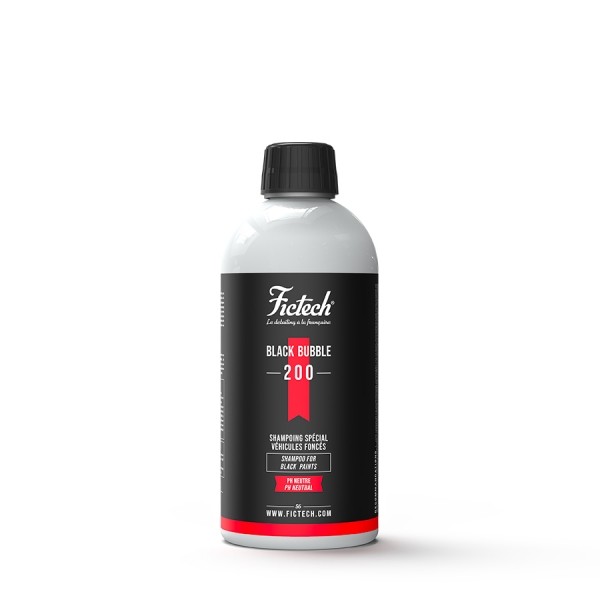 Black Bubble je pH neutrálny autošampón, ktorý je špeciálne navrhnutý na umývanie čiernych a tmavých lakovaných karosérií, ktoré sú veľmi citlivé na mikroškrabance. Tmavé karosérie sú vždy náročnejšie na údržbu a je na nich väčšia pravdepodobnosť výskytu jemných škrabancov spojených s používaním nevhodného vybavenia a tiež zlých kontaktných umývacích techník. Preto spoločnosť Fictech vyvinula technológiu Black Bubble. Šampón s neutrálnym pH, ktorý rešpektuje lak a vrstvy vosku (prírodného alebo syntetického), ktoré možno na vozidlo naniesť. Jeho zloženie nabité lubrikačnými látkami umožňuje vytvorenie silného filmu podporujúceho dokonalé kĺzanie rukavice po karosérii. Fictech Black Bubble možno použiť na lesklé aj matné laky alebo PPF fólie. Po opláchnutí zanecháva povrch vozidla lesklý a vďaka svojmu vodoodpudivému zloženiu výrazne skracuje čas schnutia. Zloženie Black Bubble obsahujúce vosk bude mať priamy dôsledok v tom, že po vyčistení zanechá na aute veľmi lesklý povrch s mokrým efektom. Black Bubble je ideálny šampón na údržbu tmavých odtieňov laku, ale nielen tam, skvele sa hodí aj na svetlé odtiene, ktoré by sa tiež mohli ľahko poškriabať. Poslednou výhodou šampónu Black Bubble je jeho samoschnúca schopnosť po opláchnutí. Vďaka tomu je následné sušenie oveľa jednoduchšie.