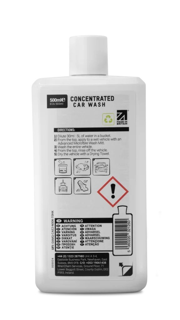 Concentrated Car Wash je kvalitný autošampón jednoduchý na použitie. Šampón preniká špinou na povrchu a uzatvára ju do mydlovej peny. Odstraňuje zvyšnú špinu z karosérie čisto a bezpečne, a tú potom je možné ľahko spláchnuť. Concentrated Car Wash je cenovo výhodný autošampón, ktorý čistí rýchlo a účinne. Riedi sa v pomere 30 ml šampónu do 5 litrov vody.
