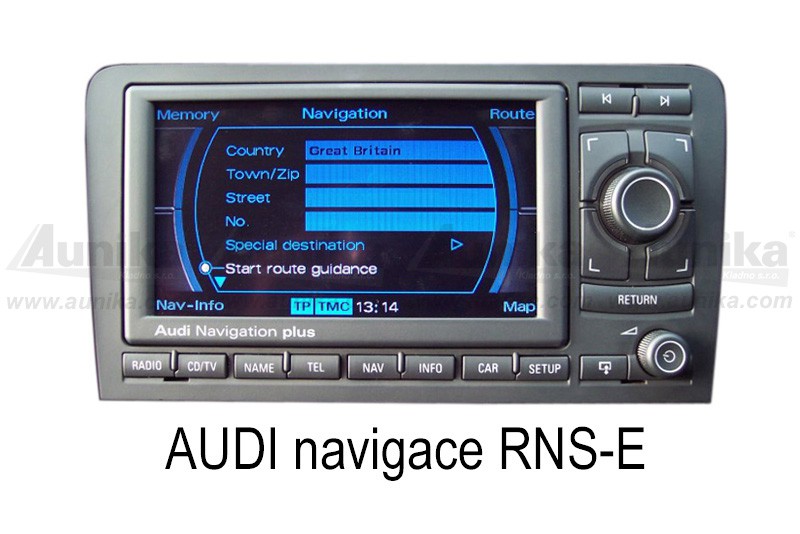 - automobily s OEM navigáciou Audi RNS-E 16: 9
