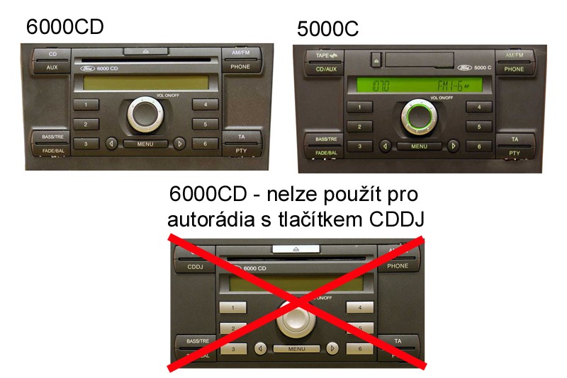 - Pozor! Nedá sa použiť s autorádiami s tlačidlom označeným CDDJ!
