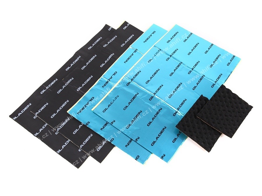 Kompletný dverový kit zložený z tlmiacich materiálov Gladen. Balík obsahuje nasledujúce tlmenie: