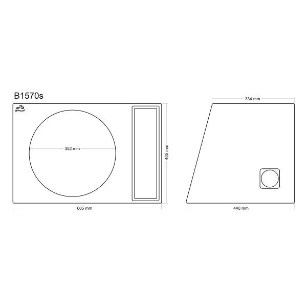 - Rozmery ozvučnice: 605 mm (šírka) x 405 mm (výška) x 440/334 mm (hĺbka)