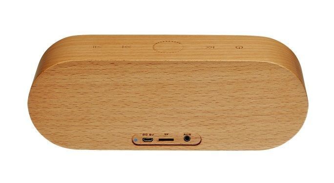 bezdrôtový prenosný stereofónny reproduktor zo skutočného dreva (Australský buk)