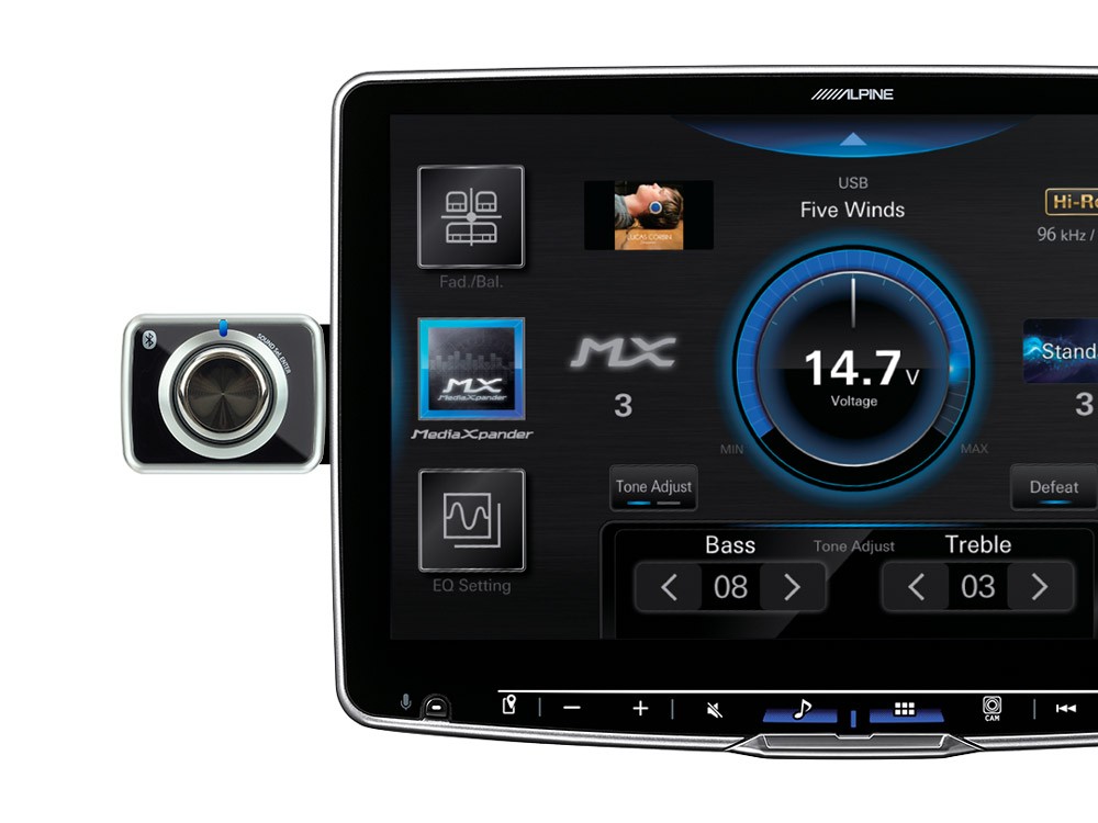 Dotykové tlačidlá na Alpine Halo 11 a Halo 9 vyzerajú veľmi elegantne a čisto, ale mnohí zákazníci uprednostňujú otočný volič pre pohodlnejšie nastavenie hlasitosti, najmä počas jazdy. Nové bezdrôtové ovládanie hlasitosti RUE-BK01 umožňuje rýchly prístup k hlavnej hlasitosti systému a dokonca umožňuje aktivovať cúvaciu kameru jednoduchým stlačením otočného ovládača. Ovládač RUE-BK01 je možné namontovať na ktorúkoľvek stranu displeja Halo alebo použiť v ľubovoľnej vlastnej inštalácii na stredovej konzole alebo na iných vhodných miestach.