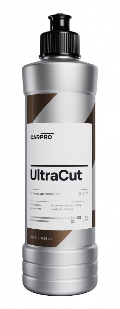 Leštiaca pasta CarPro Ultracut je výsledkom najnovšieho vývoja firmy CarPro na poli pást na leštenie lakov. Cieľom bolo vylepšiť technológiu leštiacich pást vo všetkých možných aspektoch, ako sú maximálny brúsny výkon na jednej strane a vysoký finálny lesk na strane druhej. Konzistentné výsledky bez stôp po leštení, kompatibilita so širokou škálou autolakov a schopnosť dosahovať vysokú produktivitu s minimálnym tlakom na orbitálnych leštičkách. Ak k tomu pripočítame veľmi nízku prašnosť, máme tu novú vlajkovú loď medzi leštiacimi pastami CarPro. Najčastejšia kritika na adresu akejkoľvek leštiacej pasty smeruje k nedostatočnému korekčnému účinku. Popularita orbitálnych leštičiek spolu s nástupom veľmi tvrdých čírych lakov v prémiovom segmente osobných automobilov, priniesla nekonečné hľadanie účinnej pasty zo strany užívateľov. CarPro ich volanie vypočulo a v podobe Ultracut prinieslo naozaj extra účinnú korekčnú leštiacu pastu, ktorá si „nevyláme zuby“ ani na silne poškodených tvrdých lakoch. Prekvapí vás, ako kvalitný finálny lesk bez zábrusov a hologramov dokáže takto účinná leštiaca pasta dosiahnuť! V mnohých prípadoch je dokonca možné Ultracut použiť ako jednokrokovú leštiacu pastu. Záleží na tvrdosti laku a jeho odtieni. Tam, kde je potrebné výsledný lesk predsa len ešte vylepšiť, stačí po paste Ultracut rovno použiť finálnu jemnú leštiacu pastu, napríklad skvelú CarPro Reflect alebo CarPro Essence. Ultracut milo prekvapí aj svojou naozaj širokou univerzálnosťou. Bola optimalizovaná nielen pre vysokorýchlostné rotačné leštičky, ale aj pre orbitálne leštičky. Záleží len na vás, aký nástroj zvolíte - ak dáte prednosť neprekonateľnému výkonu a produktivite rotačné leštičky, alebo siahnete po leštičke orbitálnej. Na všetkých typoch leštičky bude Ultracut fungovať s tým, že z danej koncepcie dostane maximum. Univerzálnosť leštiacej pasty Ultracut zvyšuje aj možnosť kombinácie s rôznymi leštiacimi kotúčmi. Pasta funguje s vlnenými, mikrovláknovými aj penovými kotúčmi rôznych tvrdostí. Voľba kotúčov záleží len na vás a vašom konkrétnom projekte. Ultracut si bez problémov poradí s tvrdými aj mäkkými lakmi. Tajomstvo kompatibility s rôznou škálou tvrdostí lakov a leštiacich kotúčov tkvie v použití vysoko rafinovaných abrazív najvyššej kvality a starostlivému odladeniu leštiacej emulzie. Leštiaca pasta CarPro Ultracut prešla veľmi dlhým vývojom a neskutočne precíznym ladením svojich vlastností. Tisíce hodín, ktoré vývoju pasty venovali výskumníci firmy CarPro, a desiatky testerov mali jediný cieľ – úsporu miliónov hodín práce zákazníkov a potvrdiť záväzok značky CarPro – prinášať tie najlepšie a maximálne inovatívne technológie. Pasta CarPro Ultracut je predurčená na opravy menších aj tých najväčších defektov s konzistentným pracovným postupom, minimálne komplikácií a nulovou frustráciou. Má minimálnu prašnosť, napriek tomu nie je nadmerne mastná, nezanáša leštiace kotúče a ľahko sa stiera. Je ideálny na použitie s leštiacimi kotúčmi CarPro (Wool Pad, Flash Pad alebo Cool Pad) aj kotúčmi iných výrobcov.