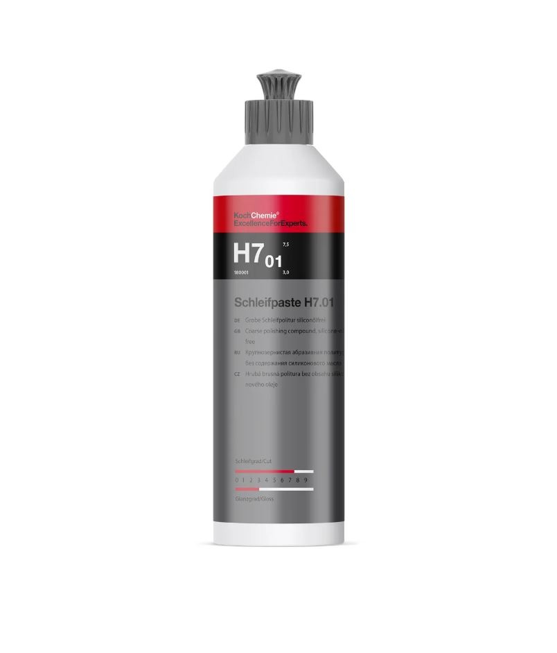 Schleifpaste je vysoko abrazívna leštenka na rýchle leštenie silne zvetraných lakov, na odstraňovanie rozstrekovaného laku a ostrých častíc až do veľkosti zrna P2000.