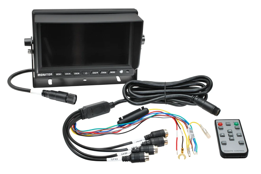 7" AHD univerzálny monitor 16:9, so vstavaným kvadrátorom 4x video vstup + DVR nahrávanie.Funkcia