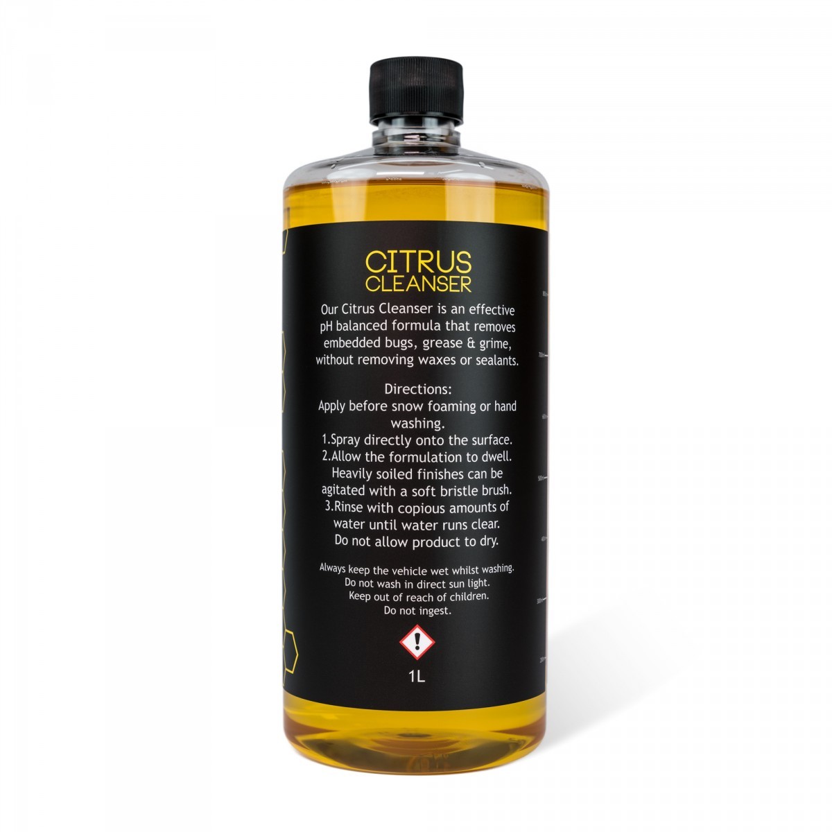 Citrus Cleanser je efektívny pH vyvážený čistič, ktorý odstraňuje mastnotu a špinu, bez toho, aby narušil ochranu laku v podobe vosku, sealantu alebo keramickej ochrany. Môžete ho používať na odstránenie bežného znečistenia, je veľmi účinný na odstránenie hmyzu alebo trusu vtákov a dá sa využiť aj miesto autošampónu alebo aktívnej peny v prípade použitia rozprašovača Carbon Collective Foaming Pump Sprayer. Citrus Cleanser je bezpečný na takmer všetky povrchové úpravy ako je lak karosérie, okná, gumové časti, zádverie, motor, kolesá alebo pneumatiky. Prácu navyše spríjemní podmanivá vôňa citrusu. V balení, ktoré má objem 1 000 ml, nájdete aj ergonomický rozprašovač Carbon Collective Ergonomic Thumb Sprayer, s ktorým sa veľmi pohodlne a efektívne pracuje. Citrus podľa našich skúseností môžete aj bez problému riediť 1:1, tým výrazne ušetríte.
