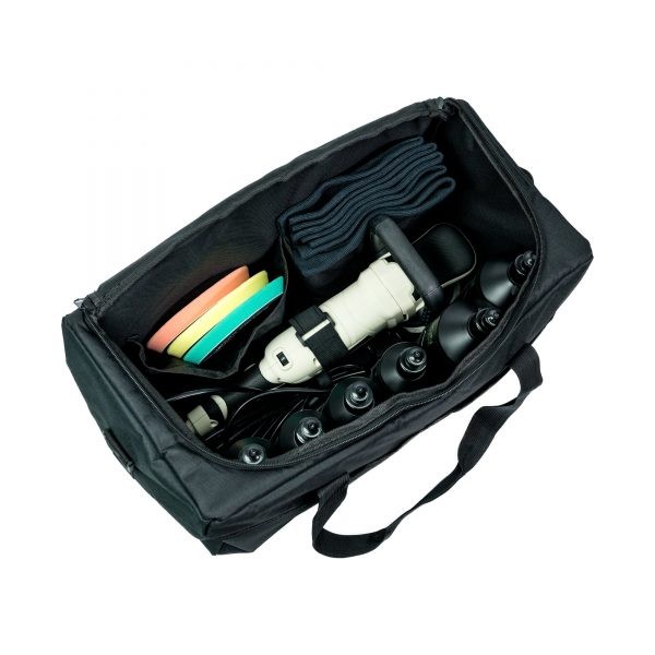 Ideálne prepravná taška pre detailerov, ktorí sebou potrebujú nosiť leštičku a k nej potrebné vybavenie. Veľký objem tašky (32 litrov) je dostatočný na to, aby pojal leštičku, štyri 500 ml fľaše, šesť 1000 ml fliaš, leštiace kotúče, utierky, kefy a štetce.