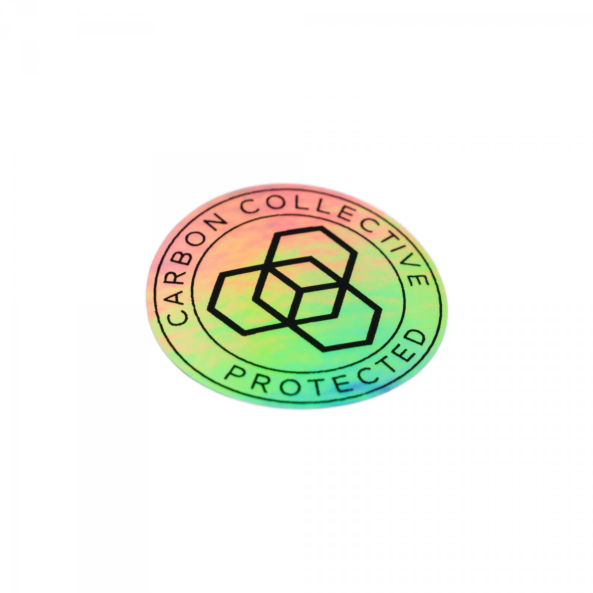 guľatá samolepka s logom Carbon Collective, priemer 40 mm
