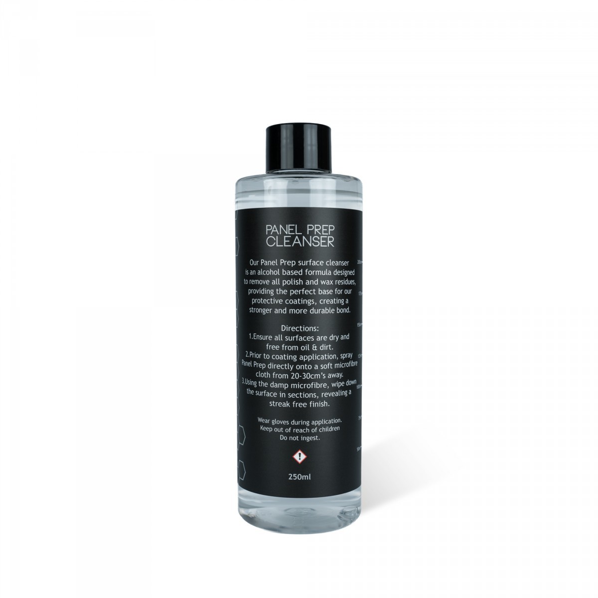 Čistič laku, ktorého zloženie bolo zmenené, aby bol ešte silnejší a účinnejší. Panel Prep má zloženie na báze alkoholu určené na odstránenie všetkých zvyškov leštiacich pást a voskov, vďaka čomu je ideálnym základom pre všetky keramické nátery, pre ktoré vytvára silnejší a odolnejší spoj. Okrem toho je (vďaka svojmu zloženiu na báze alkoholu) veľmi účinným čističom skla, ktorý vytvára bezproblémový povrch, pričom je bezpečný pre Platinum Glass a iné tekuté stierače.Hlavné vlastnosti