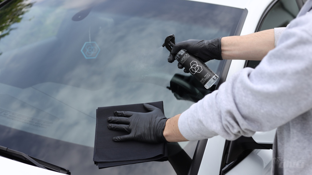 - Sklá dôkladne vyčistite a odmastite prípravkom CarPro Eraser, prípadne vaším obľúbeným čističom (IPA a pod.).