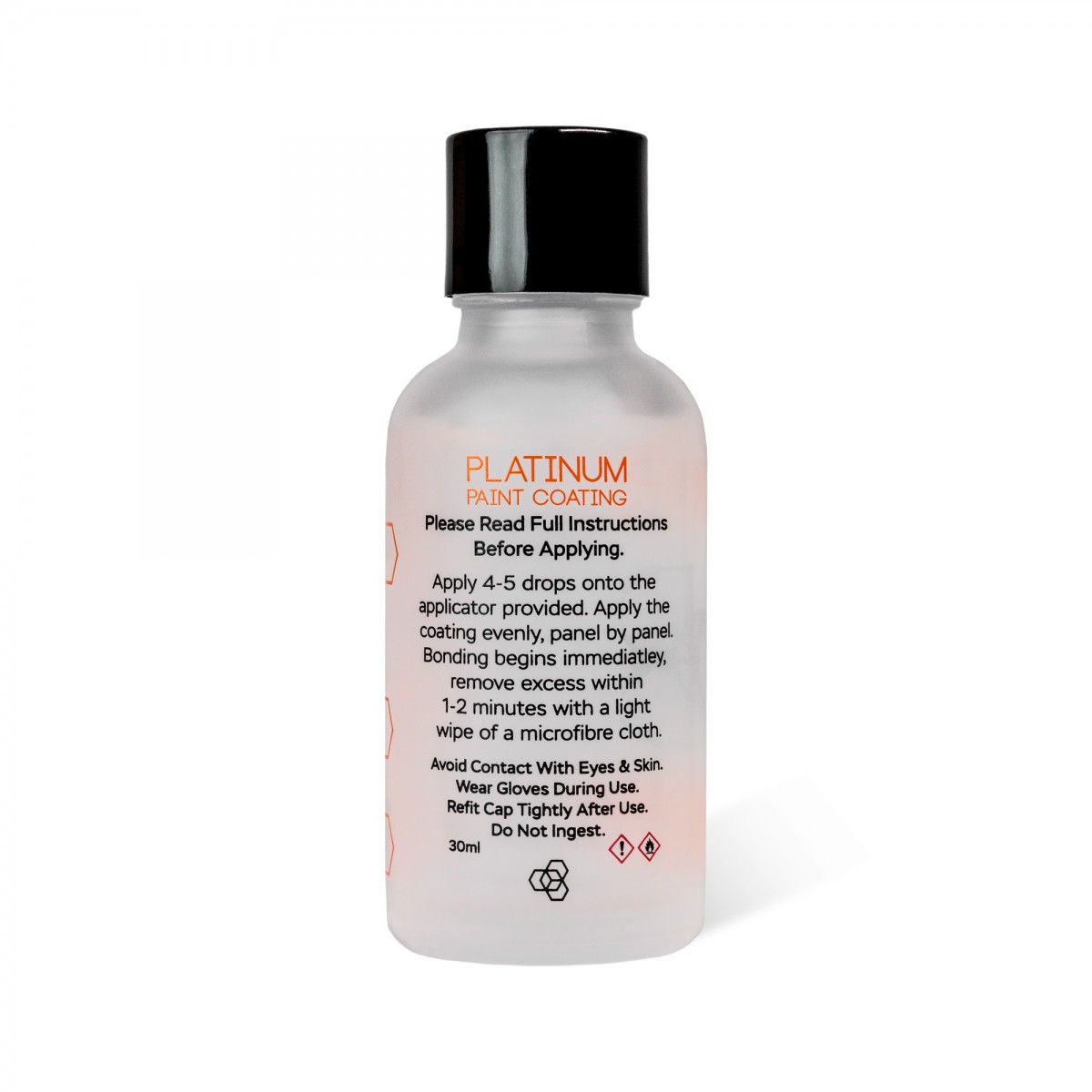 Platinum Paint - to je budúcnosť v ochrane laku. Táto keramická ochrana vytvára špeciálnu povrchovú vrstvu, z ktorej sa stane plne aktívna ochranná vrstva laku. Chráni lak do rozumnej miery od odletujúcich kamienkov, od vtáčieho trusu, od téru, UV žiareniu a väčšiny chemického znečistenia. Dokáže čiastočne zamedziť škrabancom v laku až na dva roky. Na rozdiel od obyčajných voskov, má tento keramický povlak antistatické a samočistiace vlastnosti, vďaka ktorým je následná údržba veľmi jednoduchá a nie je potrebné znovu aplikovať alebo kombinovať s voskom alebo detailerom. Toto je všetko, čo potrebujete.