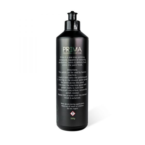 PRIMA je jednostupňová vysoko výkonná brúsna pasta, ktorá je určená na leštenie širokého rozsahu typov povrchov vrátane moderných keramických povlakov, ktoré sú odolné proti poškriabaniu, rovnako ako bežné laky. PRIMA využíva najmodernejšie brúsne zložky, ktoré sa vyrábajú z vysoko čistého oxidu hlinitého. Tieto brusivá sa postupne rozdrobujú a zjemňujú, čím sa postupne vytvára jemnejšia leštiaca pasta. Výsledkom je, že hladina rezu sa rýchlo znižuje od stredne silnej reznej zmesi, pasta sa ďalej postupne zjemňuje a dolešťuje lak do vysokého lesku, a to v jedinom kroku.