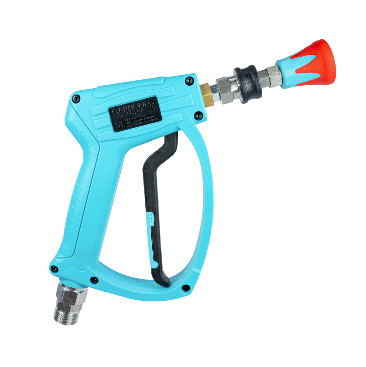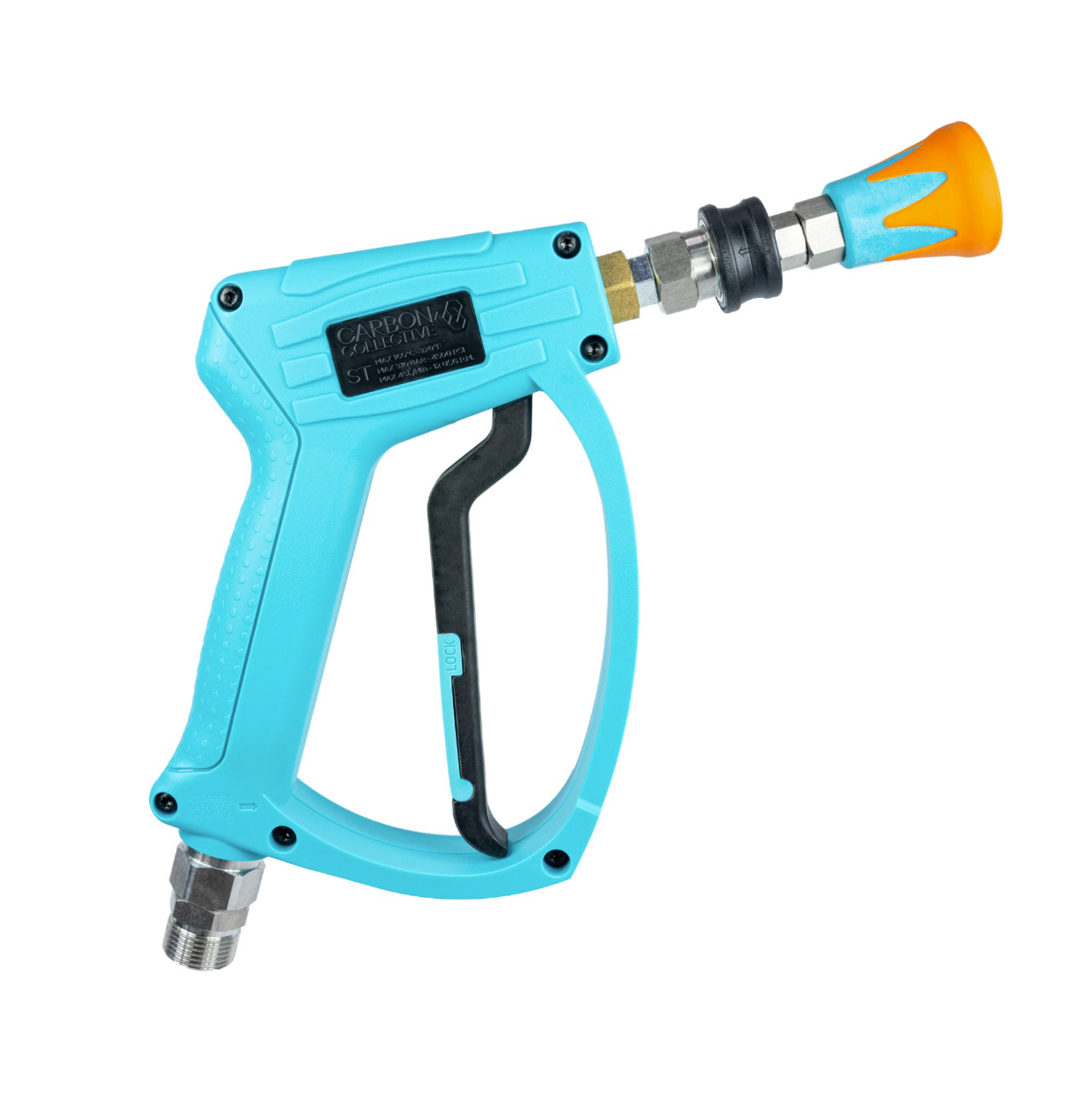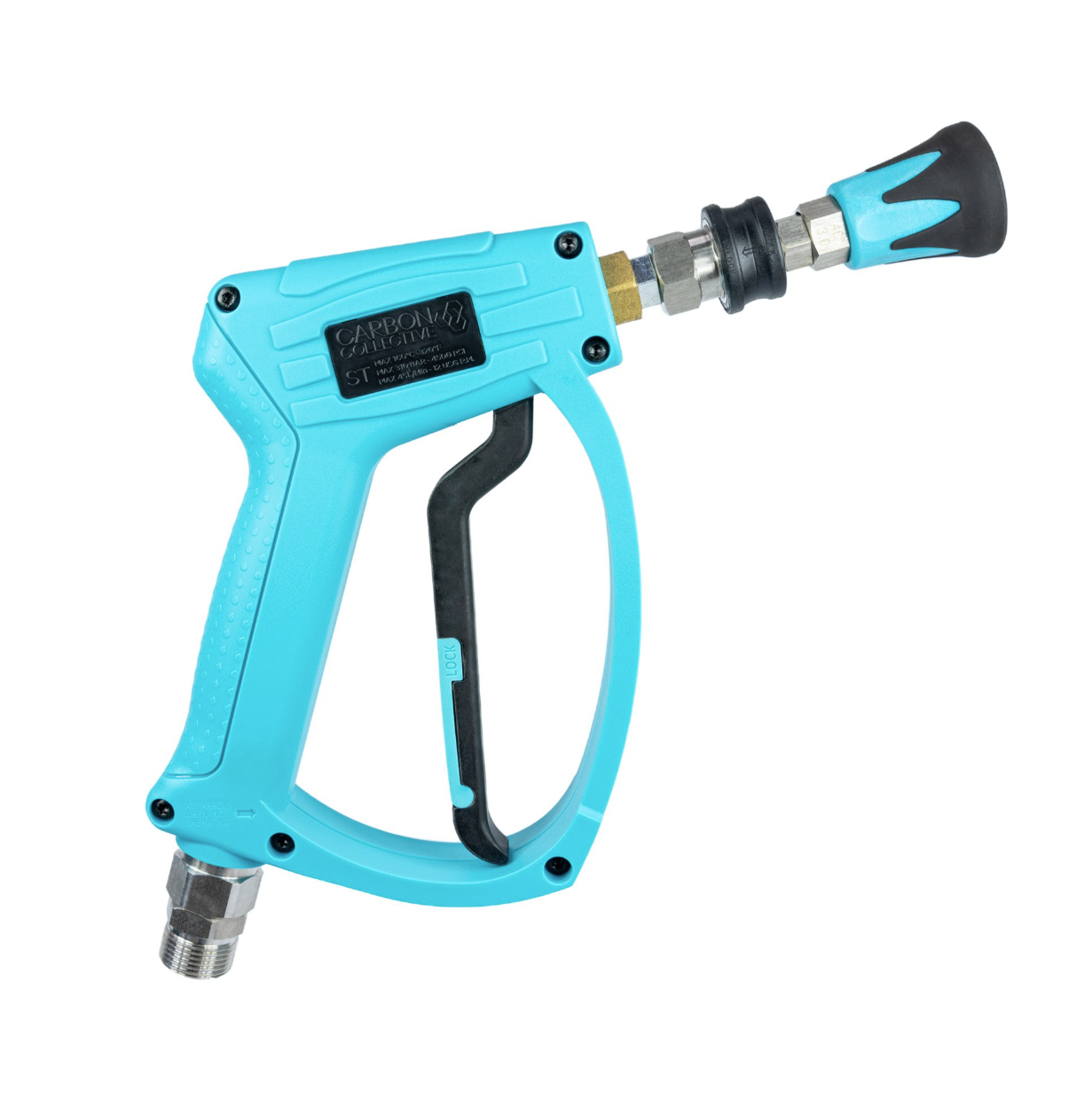 Spoločnosť Carbon Collective v rámci svojho neustáleho vývoja strávila 14 mesiacov budovaním systému ST Stainless Short Trigger od základov. Pištoľ ST Stainless Short Trigger je výkonné, odolné a ergonomické riešenie na modernizáciu vášho systému tlakového umývania, ktoré je vybavené kovaniami z nehrdzavejúcej ocele s mosadznou vnútornou konštrukciou, aby sa zabezpečila dlhá životnosť a odolnosť pre detailerov aj amatérskych nadšencov. ST Short Trigger Gun sa zameriava na ergonómiu a odolnosť. Pištoľ je navrhnutá tak, aby sa pohodlne držala v ruke, pričom ovládanie spúšte je ľahké a presné, čo znižuje únavu a zabezpečuje jednoduché používanie počas dlhého umývania. Puzdro je navrhnuté z plastu s textúrou v tvare slzy na rukoväti, čo uľahčuje uchopenie za mokra. Zabezpečuje, že vydrží náročné každodenné používanie. Ergonomicky navrhnutý a ľahko uchopiteľný rýchloupínač je tiež zapuzdrený v plaste, aby sa znížilo riziko poškriabania a zabezpečilo sa, že trysky sa dajú vždy ľahko vybrať zo spúšte (aj keď sú mokré). Táto pištoľ s krátkou spúšťou predstavuje revolúciu v striekacej pištoli, pretože ponúka lepšie ovládanie a umožňuje prístup do úzkych a tesných priestorov, ako sú podbehy kolies a spodná strana karosérie, ktoré sa často prehliadajú. To z nej robí nevyhnutné príslušenstvo pre profesionálnu starostlivosť o vaše vozidlo. Jeho súčasťou je otočná hadicová spojka z nehrdzavejúcej ocele, ktorá eliminuje frustráciu z nepríjemného zamotávania hadíc počas používania, zabraňuje zbytočnému tlaku na hadicu a armatúry a chráni ich pred potenciálnym poškodením. Na rozdiel od iných výrobkov na trhu je tento systém navrhnutý ako systém tlakového umývania, ktorý možno bezproblémovo integrovať so súpravou profesionálnych prémiových trysiek z nehrdzavejúcej ocele, tryskou Arch Blaster Turbo, Ultimate HD Snow Foam Lance, rýchlospojkami a štandardnými hadicami. Sortiment príslušenstva ST Stainless Short Trigger zabezpečuje bezproblémový proces inštalácie typu plug & play.