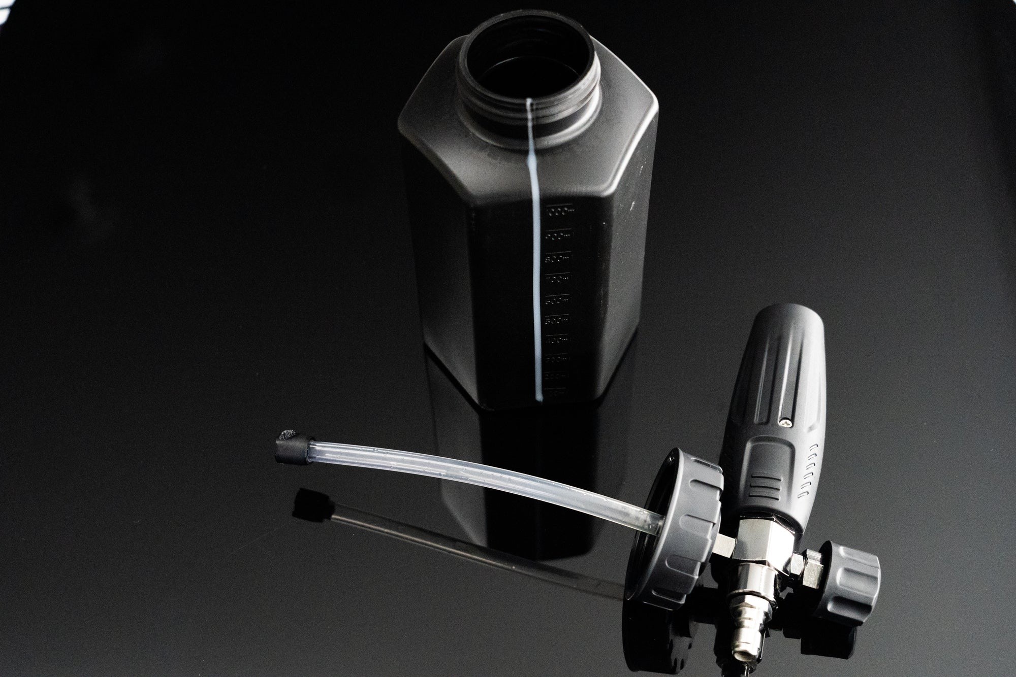 Získajte maximum zo svojej aktívnej peny pomocou napeňovača na wapku Ultimate HD Snow Foam Lance od Carbon Collective. V Carbon Collective navrhli Ultimate HD Snow Foam Lance, kedy opravili nedostatky bežných peňovacích nadstavcov pre aktívnu penu. Kompaktná, ale napriek tomu robustná konštrukcia umožňuje stáť na mieste, aj keď je fľaša prázdna, čo zabraňuje nechcenému úniku kvapaliny. Fľaša bola navrhnutá so 46 mm hrdlom, čo umožňuje ľahké plnenie pri nalievaní vody do zmesi aktívnej peny a zabezpečuje minimálny odpad. Ďalšou vychytávkou je navrhnutie konštrukcie tak, aby vám poskytla čo možno najhustejšiu penu, ktorú pretiahne prívodnú trubicu zmes peny kovovým gázovým filtrom a vytvorí tak konzistentnú hustú penu. Ergonomická hlava trysky umožňuje jednoduché nastavenie postreku. Všetka mosadzná konštrukcia bola pokovaná, aby sa zabránilo budúcej oxidácii a predĺžila sa tak životnosť kovových časti. Na zbernú trubicu bol pridaný vysoko odolný filter, ktorý zabraňuje vniknutiu nečistôt do prívodnej trubice.