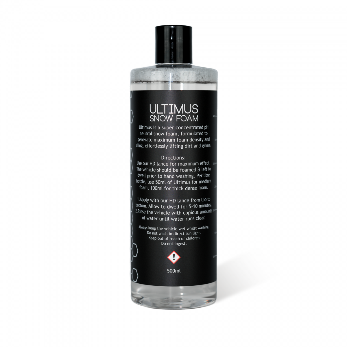 Aktívna pena Ultimus má super koncentrované zloženie, ktoré je navrhnuté tak, aby vytváralo hustú penu a pritom poskytovalo vynikajúcu priľnavosť a čistiace schopnosti. Snehová pena Ultimus odstraňuje nečistoty a dvíha povrchovú nečistotu z laku a vytvára tak priestor pre bezpečné umývanie auta. V spojení s napeňovačom vytvára super koncentrovanú receptúru, maximálnu hustotu peny a extra dlhú výdrž na karosérii, navyše vyžaduje iba 50 ml peny do jednolitrového napeňovača. Vďaka pH neutrálnemu zloženiu pena Ultimus nepoškodí vosk ani inú ochranu laku a je veľmi šetrná k prírodným karnaubským voskom.