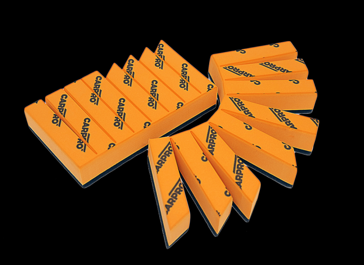 Nový CarPro 8Fingers Block vám poskytne 8 malých aplikátorov - penových blokov, vďaka ktorým bude aplikácia keramického povlaku hračkou. Pracovná strana je veľmi mäkká a maximálne šetrná k laku. Tuhá úchopová časť navyše zabraňuje nerovnomernému tlaku na povrch. Aplikátor má štyri klasické obdĺžnikové bloky a štyri bloky so skoseným koncom pre ľahšiu aplikáciu na tie naozaj najmenej dostupné miesta alebo zložito tvarované miesta.