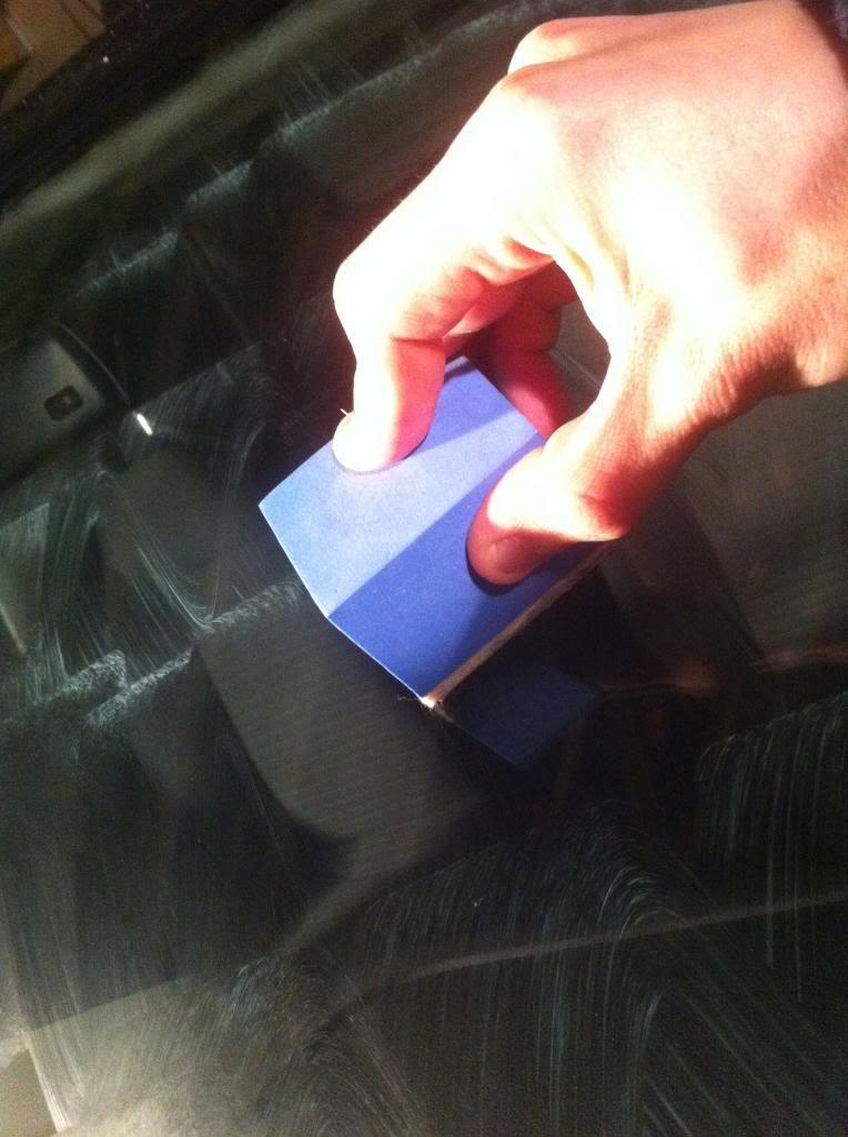 - Špecifický malý hranatý aplikátor na leštenie skla.