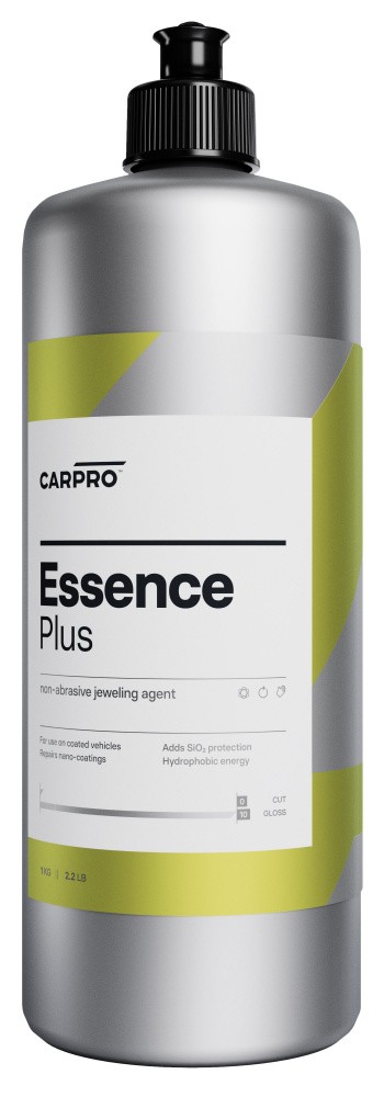 CarPro Essence Plus je revolučná leštiaca pasta s obsahom SiO2 určená na opravy keramických povrchov, ktoré boli poškodené rôznymi vplyvmi. Doteraz sa v prípade potreby keramická ochrana laku musela zbrúsiť a naniesť znova. S tým je teraz koniec! Stačí preleštiť povrch neabrazívnou pastou Essence Plus a povrch je zbavený škrabancov. Dopĺňa opotrebované či poškodené miesta, odstraňuje šmuhy po nesprávnej aplikácii a keramická ochrana tak získa opäť pôvodné hydrofóbne a ochranné vlastnosti! CarPro Essence Plus dodá povrchu ten najvyšší lesk a dodatočnú SiO2 vrstvu, ktorá predĺži životnosť ochrany na ďalší rok. Aplikuje sa ručne alebo strojovo jednoduchým preleštením (ako tekutý vosk). Vlastnosti tohto super prípravku a mimoriadna priľnavosť k povrchu umožňuje jeho použitie aj na neošetrený lak v prípadoch, keď korekcia vád abrazívnou pastou nie je možná. CarPro Essence Plus lak hĺbkovo čistí, zakryje škrabance a zanechá hladkú a vysoko lesklú keramickú vrstvu, ktorá dlhodobo odpudzuje vodu a nečistoty. Vhodné aj na celopolepy, chróm a sklo.