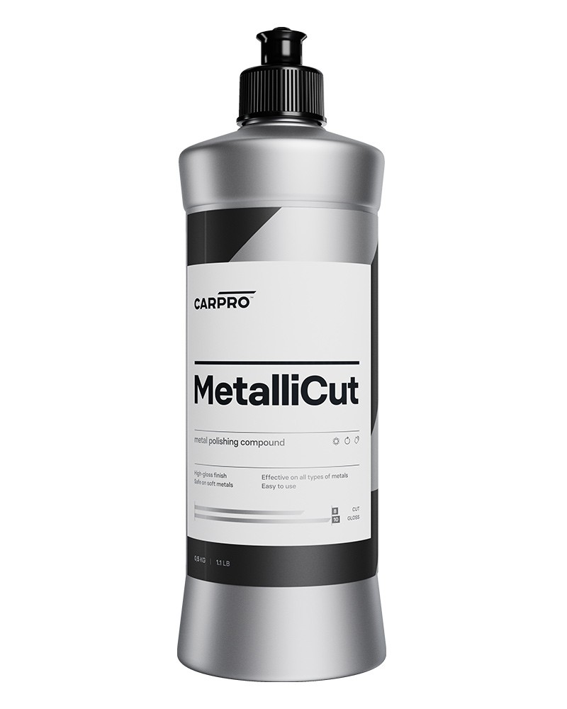 Unikátna a zároveň super výkonná leštiaca pasta na kovy, ktorá rýchlo odstráni škrabance alebo najsilnejšiu oxidáciu (vrátane hrdze) a zanecháva zrkadlový lesk. Je dostatočne účinná na tvrdé kovy, ako je nerezová oceľ alebo chróm, ale zároveň šetrná k mäkkým kovom, ako je hliník a ďalšie farebné kovy. Pri vývoji tehto leštidla na kovy sa postupovalo úplne bez kompromisov. MetalliCut obsahuje niekoľko druhov abrazív, vrátane diamantového prachu. Rýchlo a účinne čistí, obnovuje a leští koncovky výfuku, chrómované kolesá a dekoračné lišty. Je možné aplikovať ručne aj strojovo.