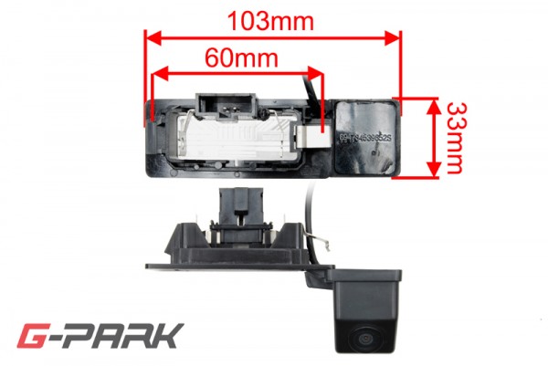 CCD parkovacia kamera pre inštaláciu do lampy pre osvetlenie zadnej registračnej značky. Súčasťou kamery je miesto pre umiestnenie pätice so žiarovkou z pôvodného svetla pre registračnú značku.