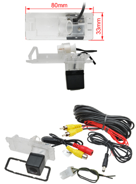 CCD parkovacia kamera pre inštaláciu na miesto osvetlenie zadnej registračnej značky. Súčasťou kamery je miesto pre umiestnenie pätice so žiarovkou z pôvodného svetla pre registračnú značku.