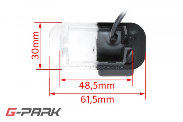 CCD parkovacia kamera pre inštaláciu na miesto osvetlenie zadnej registračnej značky. Súčasťou kamery je LED svetlo nahradzujúce pôvodné osvetlenie.