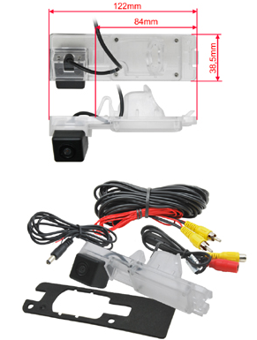 CCD parkovacia kamera pre inštaláciu na miesto osvetlenie zadnej registračnej značky. Súčasťou kamery je miesto pre umiestnenie pätice so žiarovkou z pôvodného svetla pre registračnú značku.