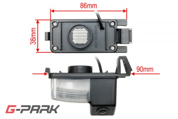 CCD parkovacia kamera pre inštaláciu na miesto osvetlenie zadnej registračnej značky. Súčasťou kamery je miesto pre umiestnenie pätice so žiarovkou z pôvodného svetla pre osvetlenie registračnej značky.