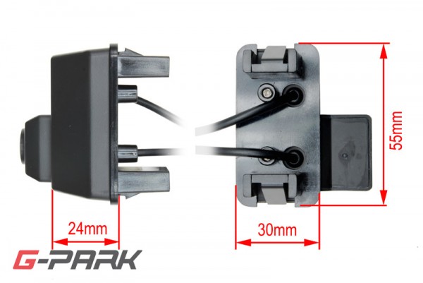 CCD parkovacia kamera pre inštaláciu na miesto osvetlenie zadnej registračnej značky. Súčasťou kamery je LED svetlo nahradzujúce pôvodné osvetlenie.