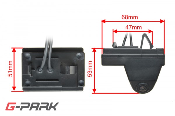 CCD parkovacia kamera pre inštaláciu na miesto osvetlenie zadnej registračnej značky. Súčasťou kamery je LED svetlo nahradzujúce pôvodné osvetlenie.