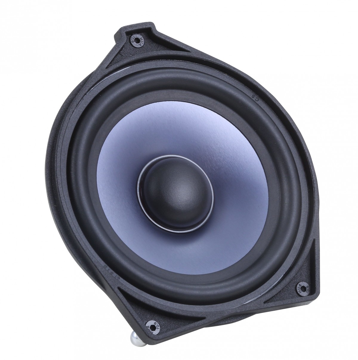 | Typy reproduktorov Koaxiálne reproduktory: Koaxiálne reproduktory sa vyznačujú konštrukciou tzv. Všetko v jednom. Výškový a stredobasový reproduktor sú v jednom koši. Výhodou je jednoduchšia montáž, ale vďaka spojeniu resp. blízkosti pásiem v jednom reproduktore, sa zvyčajne zníži kvalita zvuku. Spravidla uprostred stredobasového reproduktora, je výškový reproduktor, ktorého kmitacia cievka pracuje v druhej vzduchovej medzere spoločného magnatického obvodu. Trojpásmový koaxiálny reproduktor sa skladá zo stredobasového reproduktora, v predu na osobitnom nosníka je stredový reproduktor a samostatný výškový. Komponentné reproduktory: Komponentné reproduktory sa vyznačujú rozdelením na jednotlivé frekvenčné pásma, výškové + stredobasové + popr. basové pásmo. Jednotlivé reproduktory sa dajú umiestniť úplne oddelene, čo má za výsledok lepší zvukový aj akustický prejav. V drvivej väčšine prípadov komponentných reproduktorov je dodávaná aj externá výhybka, ktorá rozdeľuje výškové, stredové / stredobasové a u třípásma aj basové pásmo popr. umožňuje nastavenie decibelovej úrovne u výškového reproduktoru (napr. +2 dB, 0 dB, -2 dB), strmosti (napr. 6dB / okt. 12dB / okt.) či aktívne alebo bi-amp zapojenia. | Centrálny stredový |