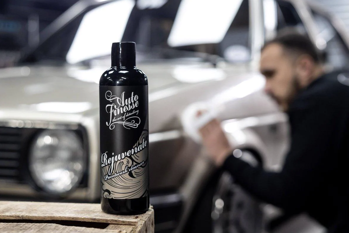Auto Finesse Rejuvenate Paintwork Cleanser je nové leštidlo na lak s čistiacimi efektmi na prípravu laku pred voskovaním či nanesením syntetických sealantov. Čistiace leštidlo Auto Finesse Rejuvenate je stredne abrazívne leštidlo s brusivami schopnými odstrániť drobné defekty laku. Obsiahnuté rozpúšťadlá uľahčujúce odstránenie usadených nečistôt. Na rozdiel od predchádzajúceho variantu je Rejuvenate možné použiť ako na ručné leštenie, tak aj na leštenie strojové s rotačnou či orbitálnou leštičkou a je efektívnejšie v rámci odstránenia defektov laku. Použitím Rejuvenate výrazne prehĺbite farbu laku a zlepšíte konečný finiš. Tak ako všetky produkty Auto Finesse, tak aj Rejuvenate patrí medzi profesionálne produkty určené pre skúsených detailerov. Vďaka vysokej efektivite a jednoduchosti aplikácie dosiahne s týmto prípravkom skvelé výsledky aj začiatočník.