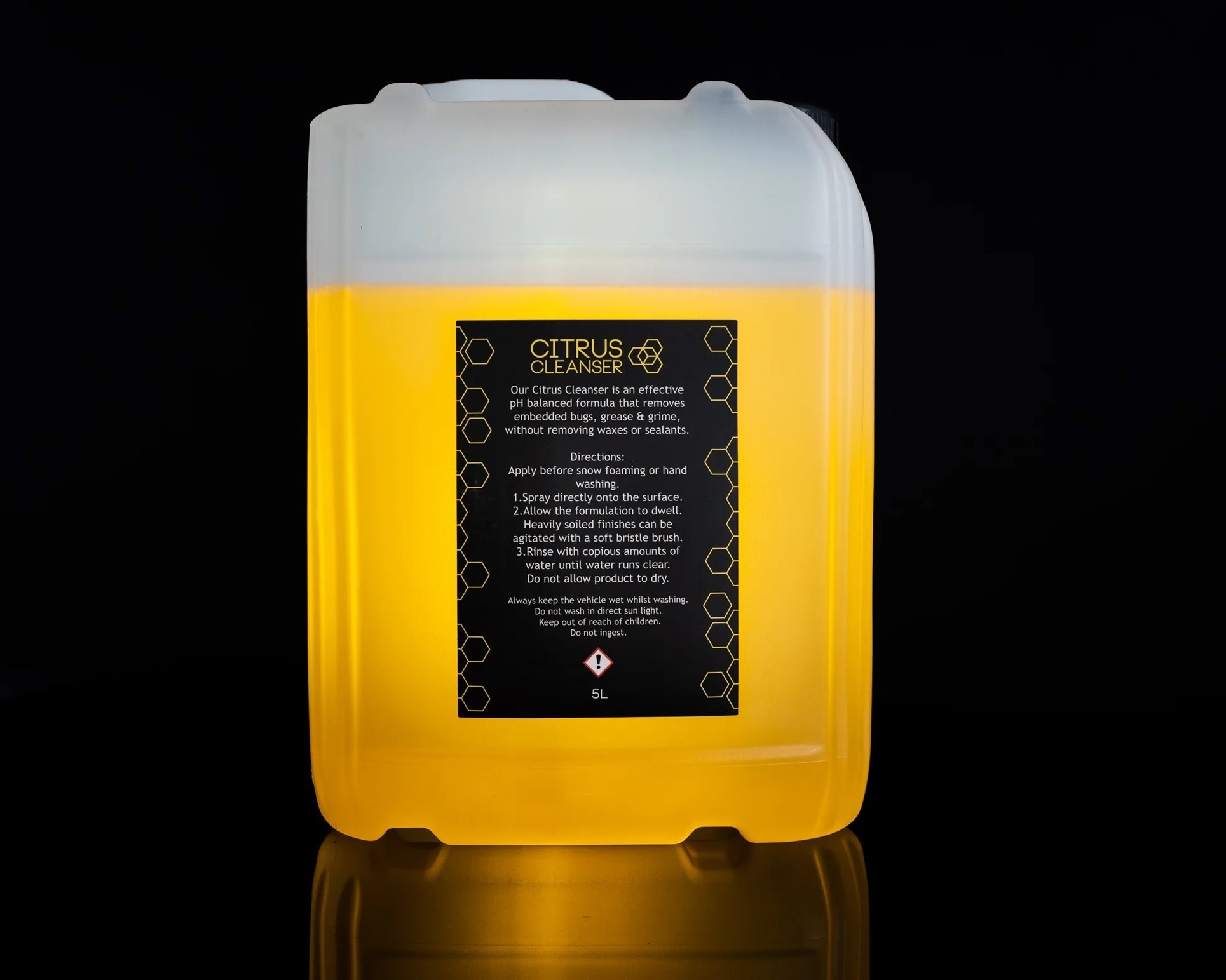 Citrus Cleanser je efektívny pH vyvážený čistič, ktorý odstraňuje mastnotu a špinu, bez toho, aby narušil ochranu laku v podobe vosku, sealantu alebo keramickej ochrany. Môžete ho používať na odstránenie bežného znečistenia, je veľmi účinný na odstránenie hmyzu alebo trusu vtákov a dá sa využiť aj miesto autošampónu alebo aktívnej peny v prípade použitia rozprašovača Carbon Collective Foaming Pump Sprayer. Citrus Cleanser je bezpečný na takmer všetky povrchové úpravy ako je lak karosérie, okná, gumové časti, zádverie, motor, kolesá alebo pneumatiky. Prácu navyše spríjemní podmanivá vôňa citrusu. V balení, ktoré má objem 1 000 ml, nájdete aj ergonomický rozprašovač Carbon Collective Ergonomic Thumb Sprayer, s ktorým sa veľmi pohodlne a efektívne pracuje. Citrus podľa našich skúseností môžete aj bez problému riediť 1:1, tým výrazne ušetríte.