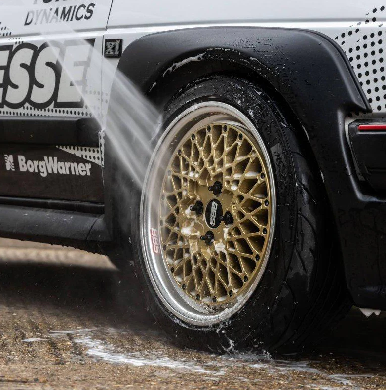 - Pri silne znečistených kolesách použite detailingový štetec a dôkladne vyčistite kolesá a pneumatiky.
