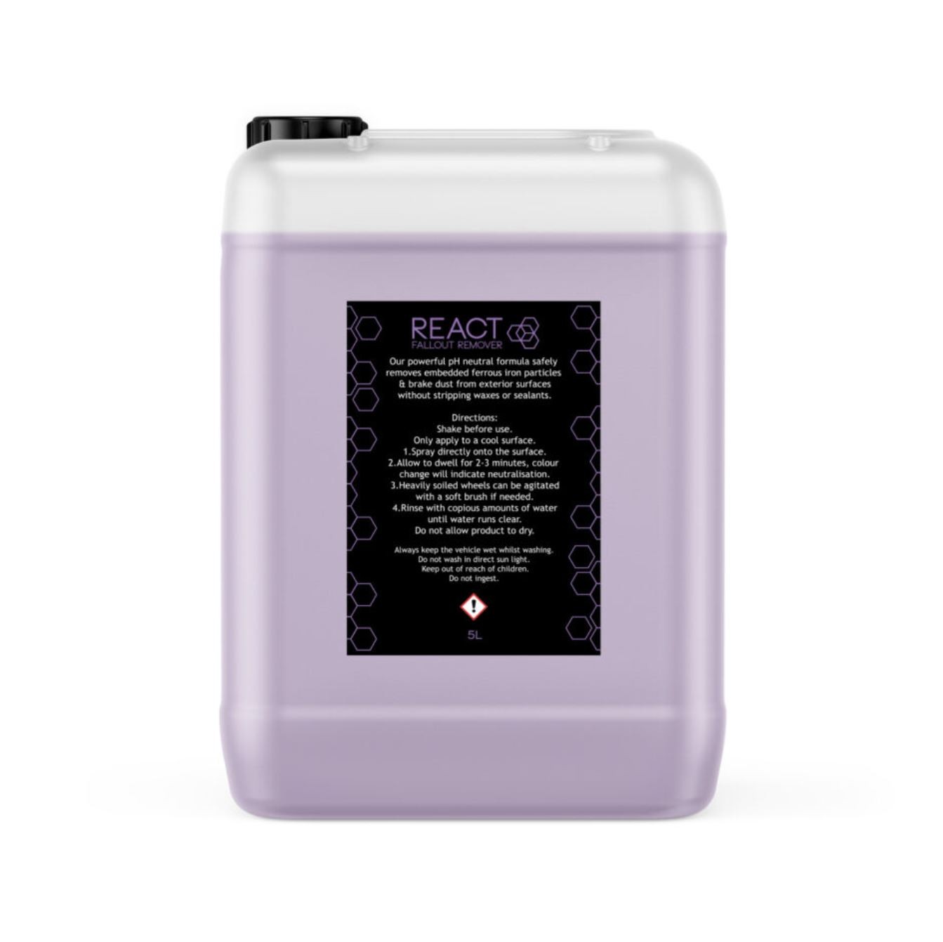 Carbon Collective React Fallout Remover Wheel Cleaner je šetrný čistič kolies a odstraňovač vzdušnej hrdze v jednom. Inovované zloženie React je ešte účinnejšie, čo umožňuje dlhšie pôsobenie prípravku na povrchu. Carbon Collective React je jeden z mála odstraňovačov vzdušnej hrdze, ktorý má príjemnú vôňu a nezapácha. React je čistiaci prostriedok bez kyselín, je silný, ale pritom pH neutrálny, bezpečný pre použitie na takmer všetkých vonkajších povrchoch a povrchových úpravách. Obsahuje špeciálnu látku, ktorá reaguje pri kontakte so železnými časticami a rozpúšťa ich. Súčasťou balenia je aj chemicky odolný rozprašovač.